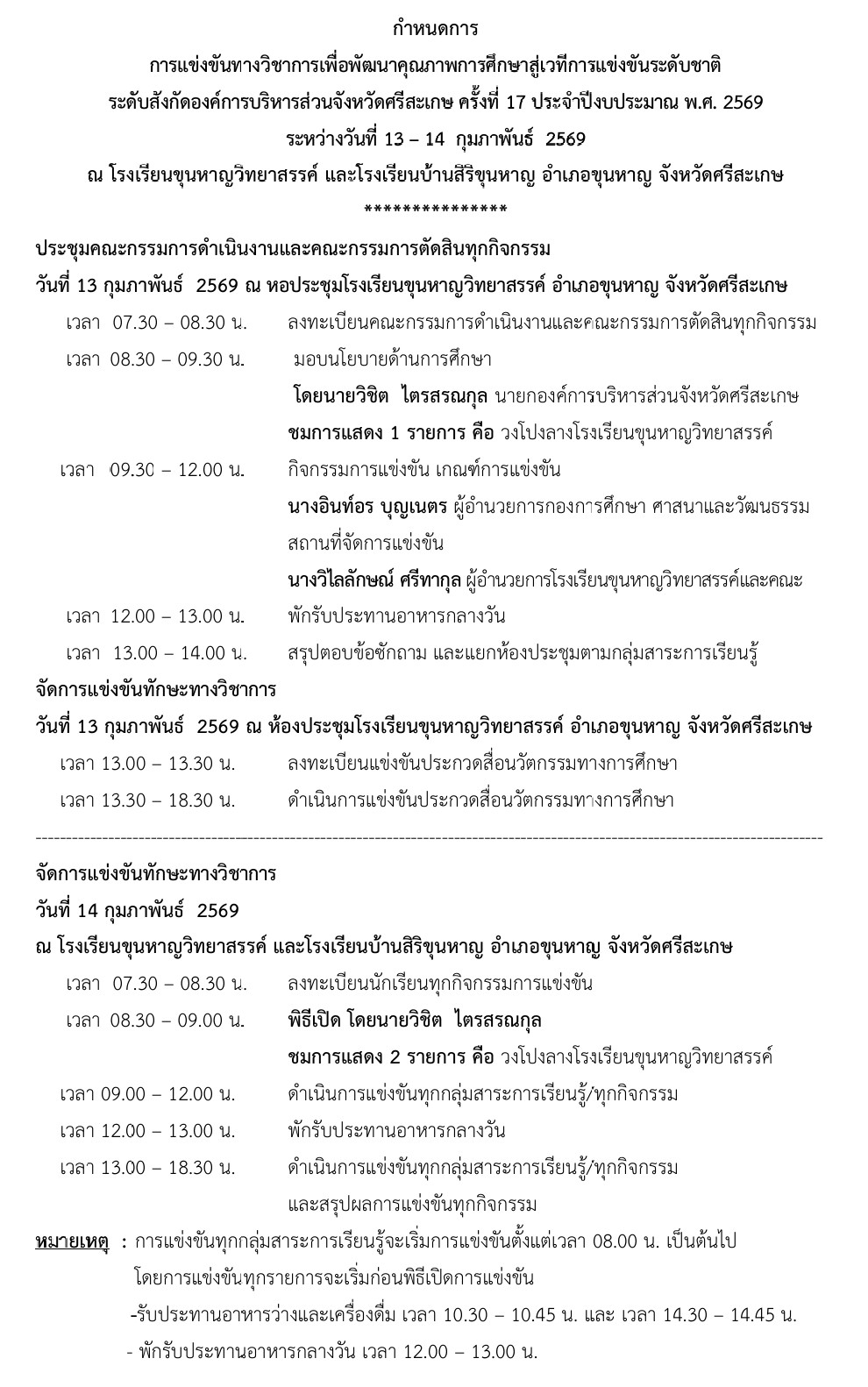 ผังบริเวณจัดการแข่งขันทักษะทางวิชาการนักเรียน อบจ.ศรีสะเกษ ปี 2569